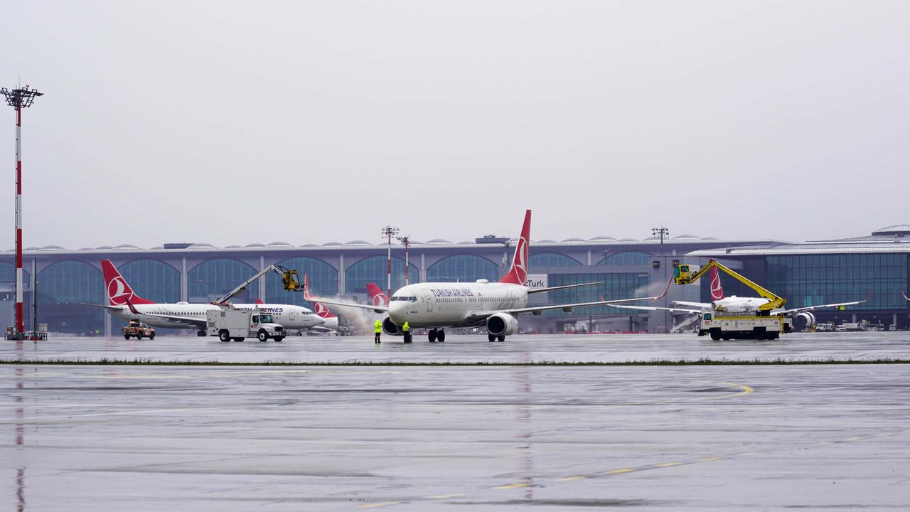 Hava sıcaklığının düşmesi sonrası, uçuş güvenliğinin aksamaması için havalimanlarında uçaklar 'De-Icing' denilen buzlanmaya karşı özel sıvı püskürtüldü. Uçuşa hazırlanan uçakların gövdelerinin yanı sıra özellikle kuyruk ve kanatları buzlanmaya karşı 'De-Icing' adlı alkol ve glikoz karışımı özel sıvıyla yıkanıyor. Uçuşlarda aksama yaşanmazken, karla mücadele araçları olumsuz bir duruma karşı apronda hazır bekletiliyor.