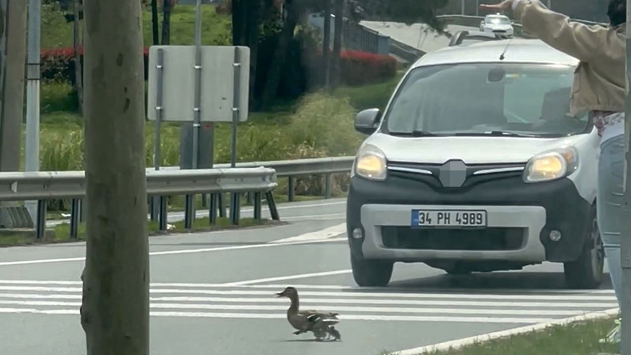İstanbul’da bir ördek ailesinin karşıdan karşıya geçmesi için duyarlı bir sürücü akan trafiği durdurdu. O anlar trafikteki başka bir vatandaşın kamerasına yansıdı.