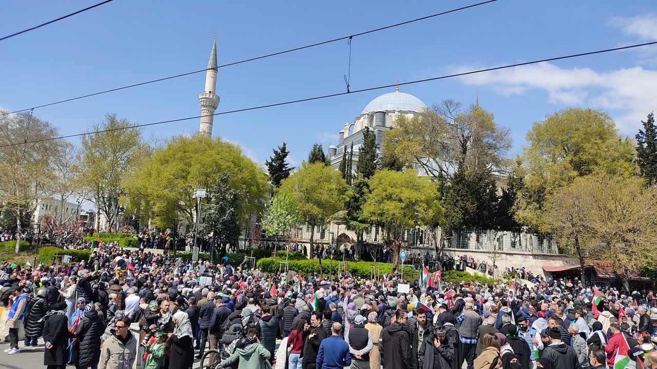Çeşitli sivil toplum örgütleri vasıtası ile Beyazıd Meydanı'nda bir araya gelen kalabalık, Filistin'e destek için Ayasofya-i Kebir Cami-i Şerifi'ne kadar yürüdü. Yürüyüşe katılan vatandaşlar "Kahrolsun İsrail" sloganları attı. Yürüyüşte ayrıca Filistin halkının yaşadıklarına dikkat çekildi. On binlerce kişinin katıldığı yürüyüşte pankartlar ile beraber Türk ve Filistin bayrakları taşındı.