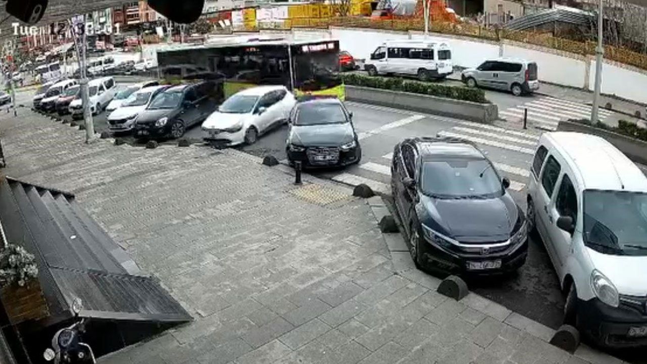 Çarpma anı ise bir iş yerinin güvenlik kamerasına yansıdı. Görüntüde, İETT otobüsünün seyir halindeyken park halindeki otomobillere çarptıktan sonra durduğu anlar yer alıyor. Kaza sonrası araçlarda maddi hasar meydana geldi.