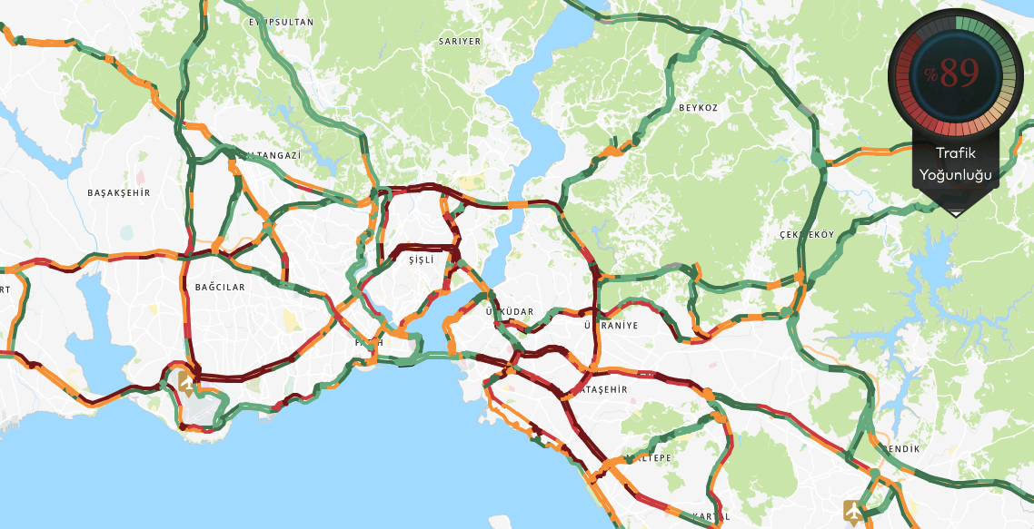 Şehrin trafik haritası incelendiğinde; özellikle E-5 (D-100) karayolu ve TEM Otoyolu üzerindeki kilit noktaların tamamen 'durma' noktasını simgeleyen koyu kırmızı renkle kaplandığı görülüyor. Avrupa Yakası'nda Şişli, Beşiktaş ve Bağcılar bölgelerinde yoğunluk hat safhaya ulaşırken; Anadolu Yakası'nda Üsküdar, Ümraniye ve Ataşehir aksında sürücüler ilerlemekte güçlük çekiyor. Boğaz köprülerindeki her iki yönde de uzun araç kuyrukları oluşmuş durumda.