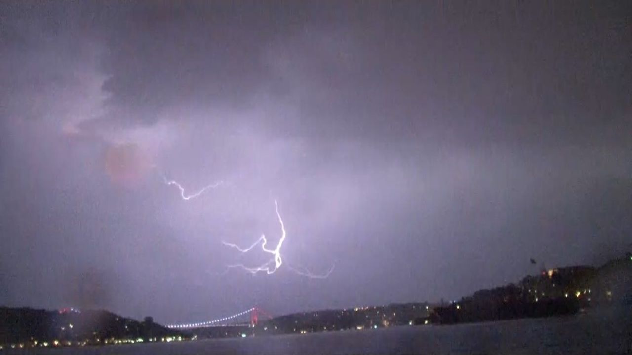 İstanbul’da akşam saatlerinde sağanak yağış etkili oldu. Yağışla birlikte çakan şimşekler megakentte geceyi aydınlattı.