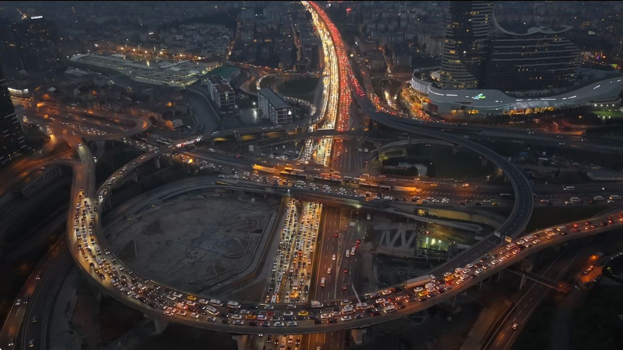 İstanbul’da akşam saatlerinde trafik yoğunluğu arttı. İBB Trafik Yoğunluğu Haritası verilerine göre saat 18.27 itibarıyla yoğunluk Avrupa Yakası'nda yüzde 87, Anadolu Yakası'nda yüzde 90 İstanbul genelinde ise yüzde 89'a ulaştı. Kentteki ana arterlerde trafik durma noktasına geldi. D-100 Karayolu Göztepe Mevkii'nde araçların güçlükle ilerlediği görüldü. Yaşanan yoğunluk dronla havadan görüntülendi.