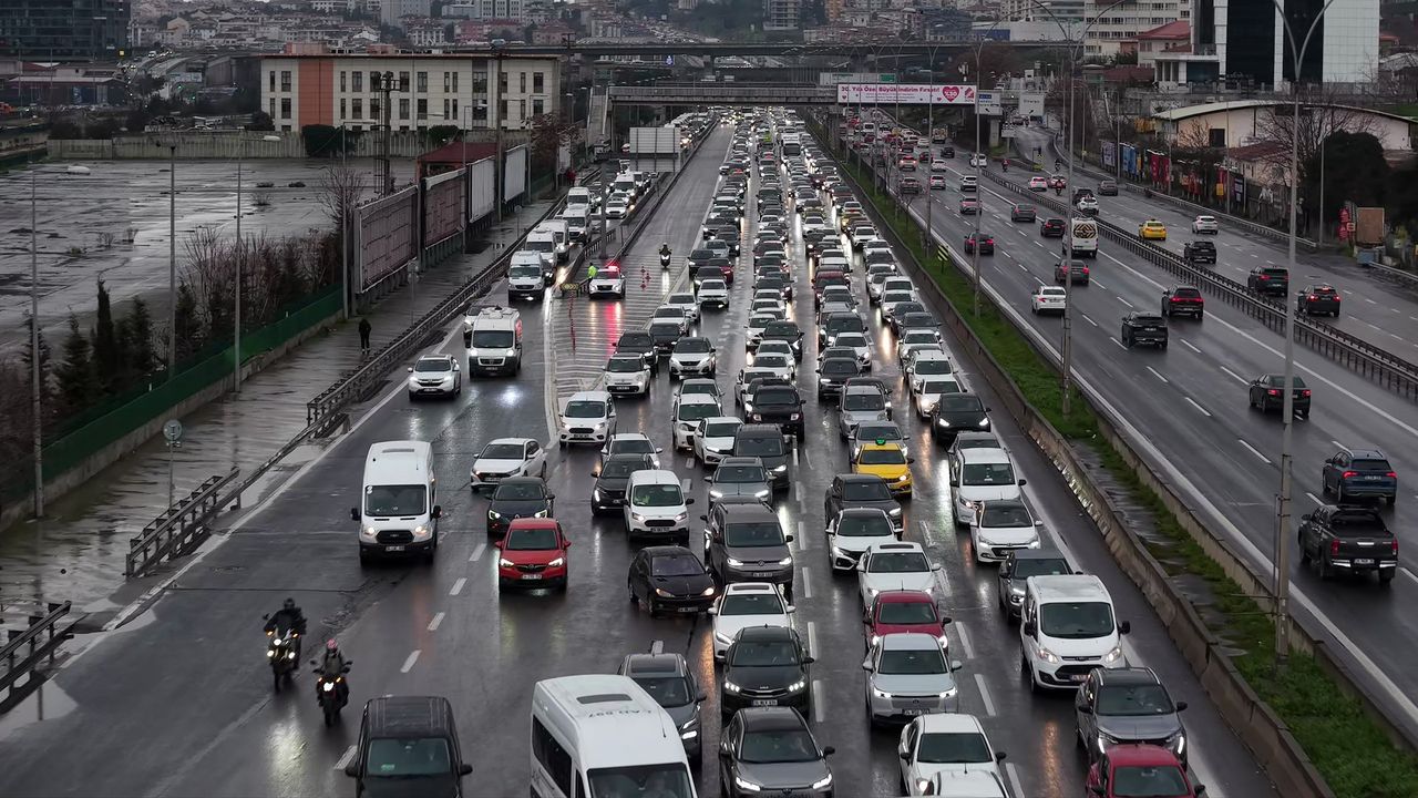 Kentteki ana arterlerde trafik durma noktasına geldi. D-100 Karayolu Göztepe Mevkii'nde araçların güçlükle ilerlediği görülürken, oluşan trafik yoğunluğu dronla havadan görüntülendi.