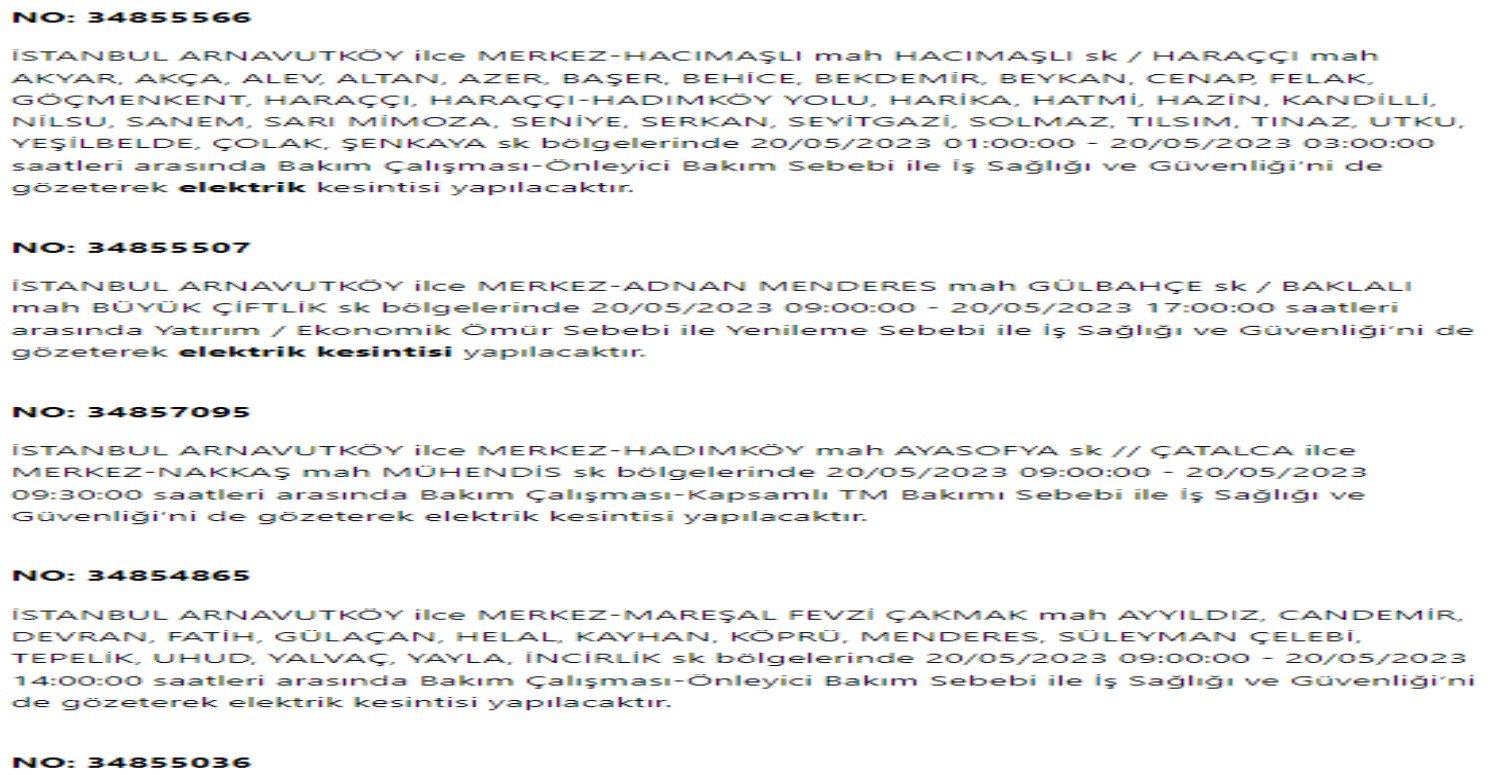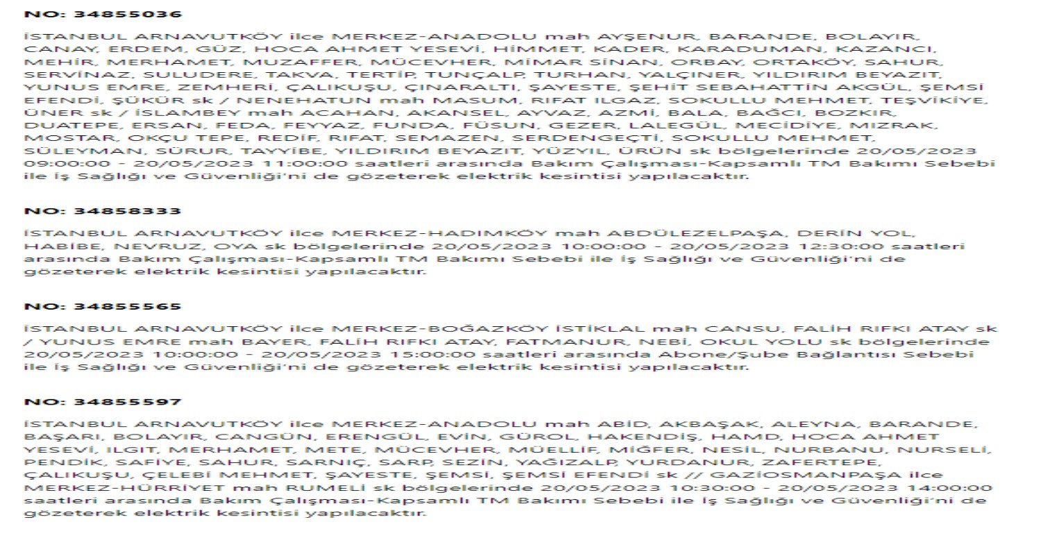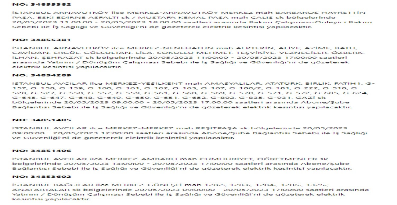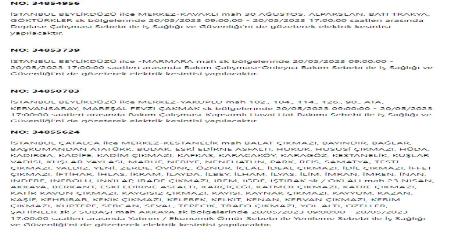 Bu kesintilerin, planlı bakım ve onarım çalışmaları nedeniyle gerçekleştirileceği belirtilmiştir. BEDAŞ, elektrik kesintileri öncesinde ve sonrasında vatandaşların mağdur olmaması için gerekli tedbirleri alacaklarını ve kesinti süresini mümkün olduğunca kısaltmak için çalışacaklarını belirtmiştir.