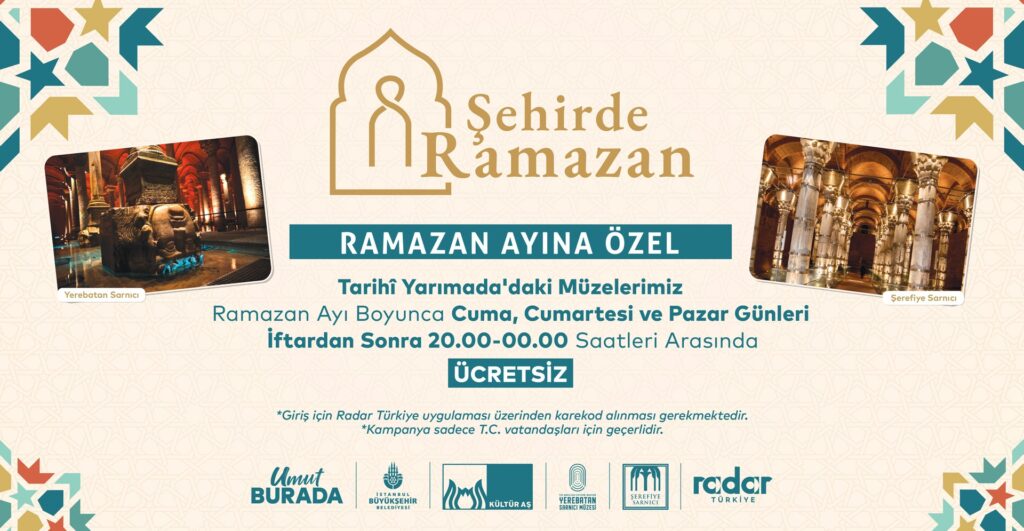 İBB Kültür AŞ tarafından hayata geçirilen bu uygulama ile vatandaşlar, gün boyu süren oruç ibadetinin ardından akşam saatlerini tarihin derinliklerinde geçirme fırsatı bulacak. Ramazan süresince her Cuma, Cumartesi ve Pazar günleri saat 20.00 ile 00.00 arasında T.C. vatandaşları bu iki büyüleyici mekânı hiçbir ücret ödemeden ziyaret edebilecek.