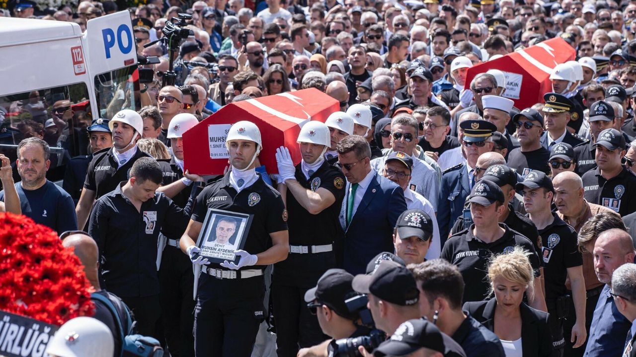 Balçova ilçesindeki Salih İşgören Polis Merkezi Amirliği'ne yönelik silahlı saldırıda şehit düşen 1'inci Sınıf Emniyet Müdürü Polis Başmüfettişi evli ve 2 çocuk babası Muhsin Aydemir ile evli ve 2 çocuk babası polis memuru Hasan Akın için Gaziemir 15 Temmuz Şehitler Camisi'nde cenaze töreni düzenlendi. Törene İçişleri Bakanı Ali Yerlikaya, Emniyet Genel Müdürü Mahmut Demirtaş, İzmir Valisi Süleyman Elban, Ege Ordusu ve Garnizon Komutanı Orgeneral İrfan Özsert, İzmir Cumhuriyet Başsavcısı Ali Yeldan, İl Emniyet Müdürü Celal Sel, İl Jandarma Komutanı Tümgeneral Metin Düz, Sahil Güvenlik Hava Komutanı Tuğamiral Ertuğrul Şerbetçi, İzmir Büyükşehir Belediye Başkanı Cemil Tugay, AK Parti Genel Sekreteri ve İzmir Milletvekili Eyyüp Kadir İnan, MHP Genel Sekreter Yardımcısı ve İzmir Milletvekili Tamer Osmanağaoğlu, AK Parti İzmir milletvekilleri Şebnem Bursalı, Mahmut Atilla Kaya, Mehmet Ali Çelebi, Yaşar Kırkpınar, CHP İzmir Milletvekili Murat Bakan ile çok sayıda bürokrat ve siyasi katıldı. Cenazede şehit Muhsin Aydemir'in babası İlhan Aydemir, annesi Melahat Aydemir, eşi Ebru Aydemir, çocukları Leyla ve Mert Aydemir, şehit Hasan Akın'ın babası Ferhat Akın, annesi Fatma Akın, eşi Şule Akın ile çocukları Esma ve Zeynep Akın büyük üzüntü yaşadı. Törene Cumhurbaşkanı Recep Tayyip Erdoğan ile TBMM Başkanlığı, İçişleri Bakanlığı, CHP Genel Başkanlığı, Emniyet Genel Müdürlüğü'nün de aralarında olduğu kamu kurum ve kuruluşlarıyla siyasi parti temsilcileri çelenk gönderdi.