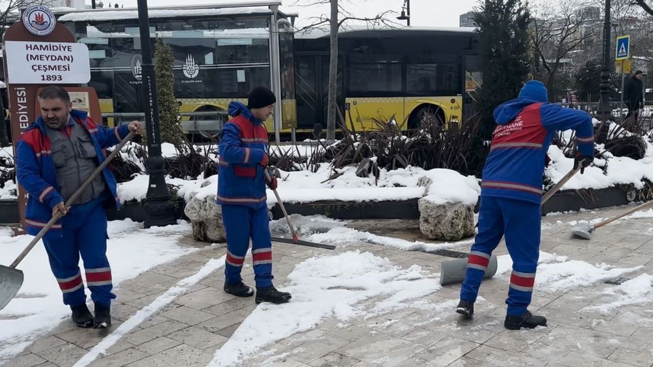 Kağıthane’de aralıklarla devam eden kar, cadde ve sokakları beyaza bürüdü. Kağıthane Belediyesi denetim ekipleri, kaldırımdaki kar ve buzların temizlenmesi için çalışma başlattı. Karla mücadele ekipleri, vatandaşların olumsuz bir durum yaşamaması için ellerine kürekleri alarak yollara düştü. Ekipler, küreklerle kaldırım, üst geçit ve merdivenlerdeki kar ve buzları temizleyerek yayaların güvenli ve rahat yürüyebilmelerini sağlıyor.