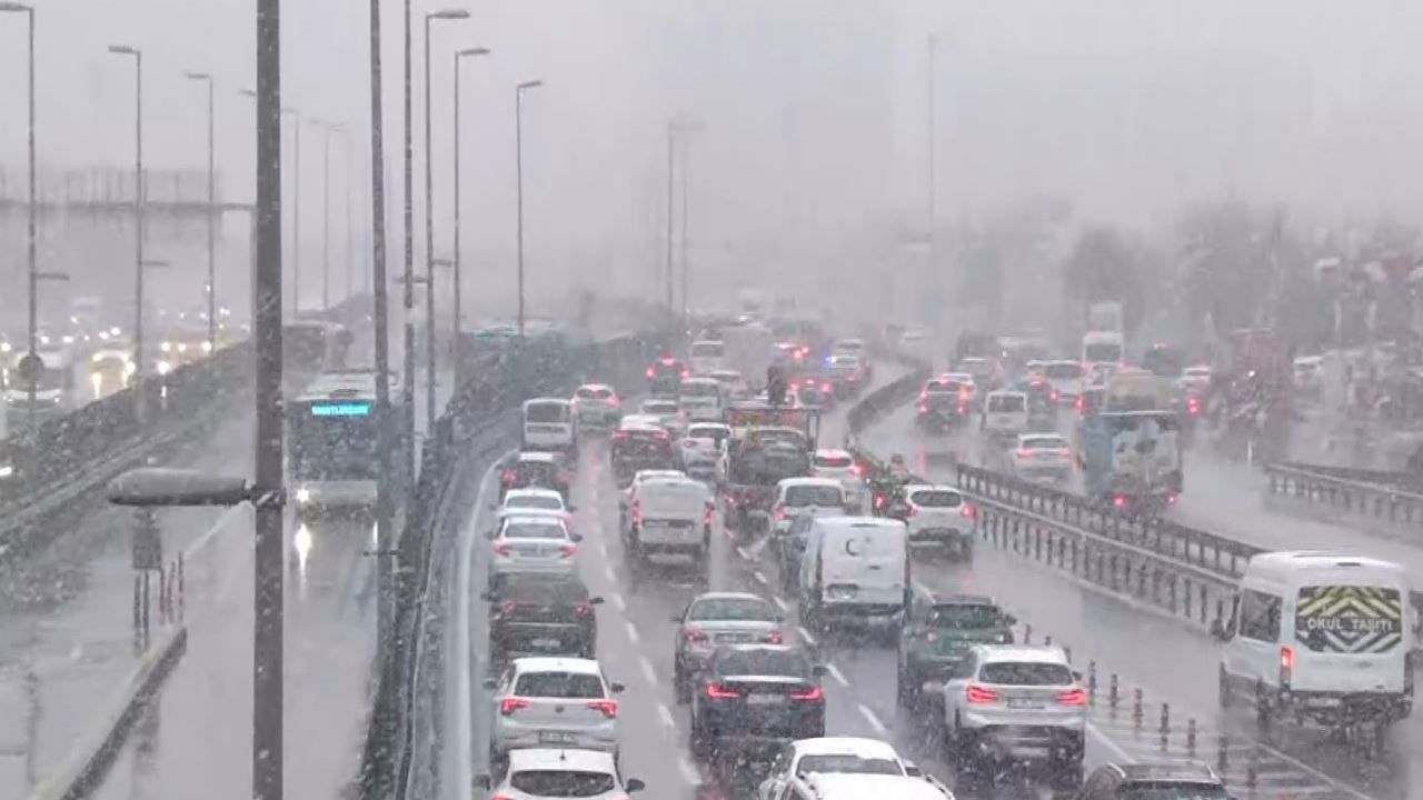 Meteorolji uzmanlarının yaptığı uyarıların ardından İstanbul'da beklenen kar yağışı aralıklarla etkisi sürdürüyor. Kar yağışı nedeniyle okullarda eğitim ve öğretime 1 gün süreyle ara verilirken, okulların tatil olmasının etkisiyle de ana arterlerde trafik yoğunluğu yaşanmadı. İstanbul Büyükşehir Belediyesi (İBB) trafik yoğunluk haritasına göre, saat 08.45 itibariyle kent genelinde trafik yoğunluğu yüzde 51 olarak ölçüldü. Cevizlibağ'daki araç yoğunluğu dron kamerasına yansıdı.