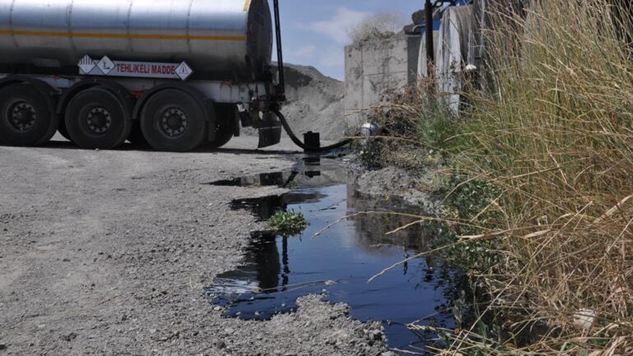Erzurum’dan tankerle getirilen ve asfalt yapımında kullanılan 150 derece sıcaklıktaki ziftin drenaj kanalına boşaltılması sırada hortum yerinden çıktı.
