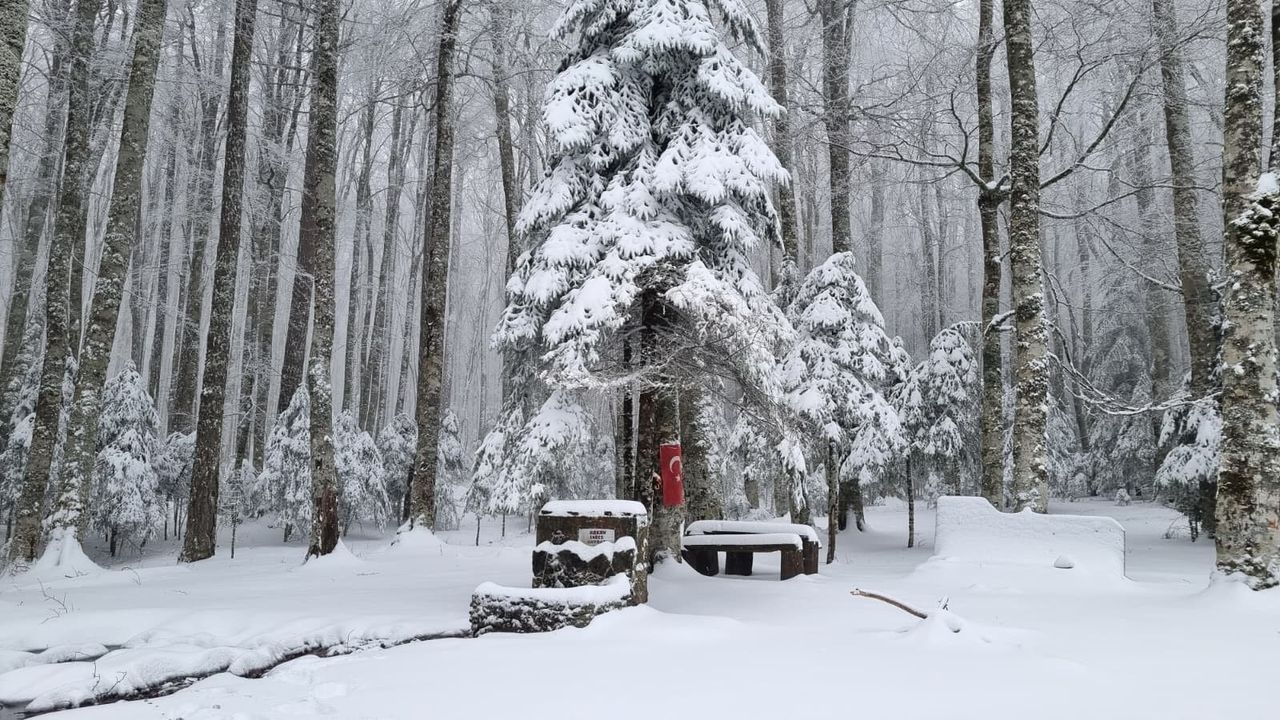 Karla kaplanan ormanlık alanlar, ağaçların üzerini saran beyaz örtü ve sisle birleşen manzaralar görsel şölen oluştururken, bölge hem fotoğraf tutkunları hem de doğaseverler için cazibe merkezi haline geldi.