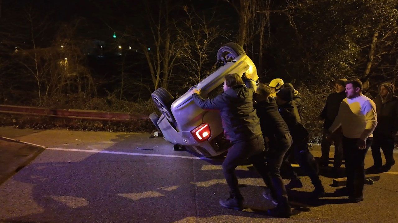Kaza, gece saat 02.15 sıralarında Beykoz Çengeldere Mahallesi Çavuşbaşı Cumhuriyet Caddesi üzerinde meydana geldi. İddiaya göre 34 ETN 629 plakalı otomobil, kontrolden çıkarak takla attı. Kazada, araçtaki 2 kişi yaralandı.