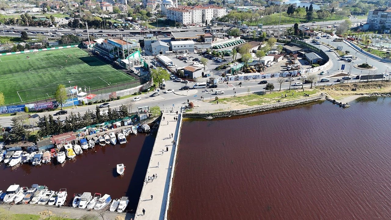 Son günlerde yurdun farklı noktalarındaki göl ve denizlerde suyun renk değiştirmesi gündem olurken benzer bir olay da İstanbul'daki Küçükçekmece Gölü'nde yaşandı. Deniz ile gölün buluştuğu anlan da suyun rengi kırmızıya dönerken, çevredeki vatandaşlar kirlilik olabileceği nedeniyle korku duyduklarını belirtti. Kırmızıya dönen su ise havadan dron ile görüntülendi.