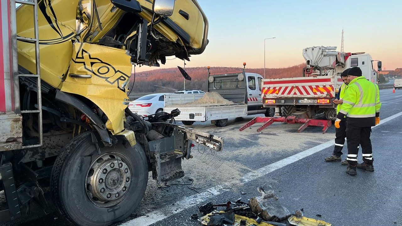 Beykoz Kuzey Marmara Otoyolu'nda seyir halindeki kamyon, aynı istikamette seyreden tıra arkadan çarptı. Kazada kamyon sürücüsü yaralandı.
