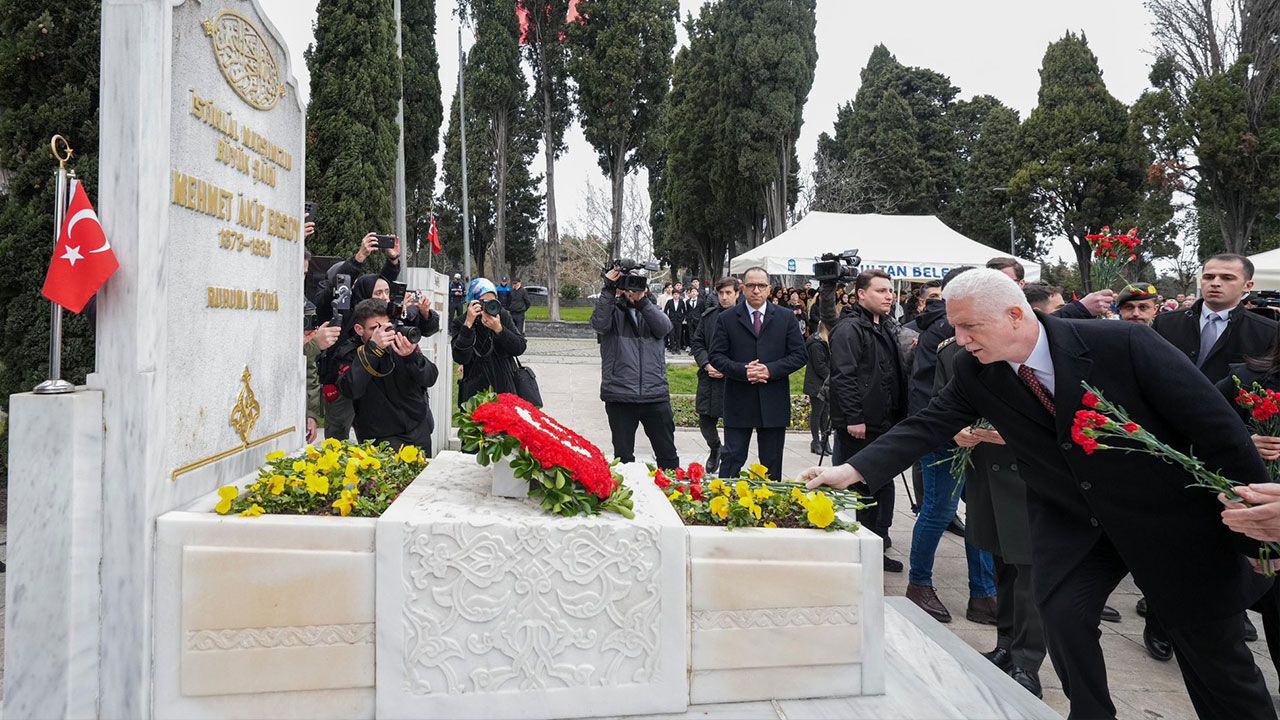 İstiklal Marşı'nın kabulünün 105'inci yıl dönümünde milli şair Mehmet Akif Ersoy, Edirnekapı Şehitliği'ndeki kabri başında düzenlenen törenle anıldı.