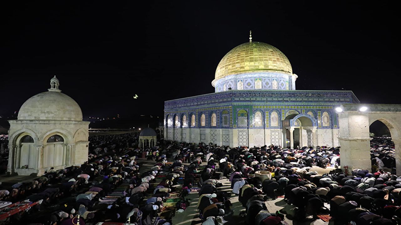 Mescid-i Aksa'da 200 bin Müslüman, Ramazan ayının son cuma gününde yatsı ve teravih namazlarını kıldı.