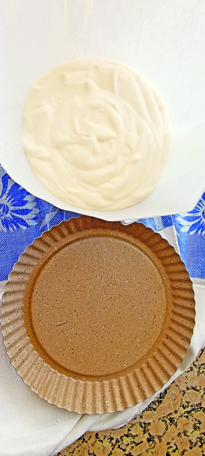 Süre tamamlandığında Cheesecake'i kalıptan çıkaralım, kenarlarındaki parşömeni kağıdı da alalım. Bu şekilde oda sıcaklığında soğumaya bırakalım.
