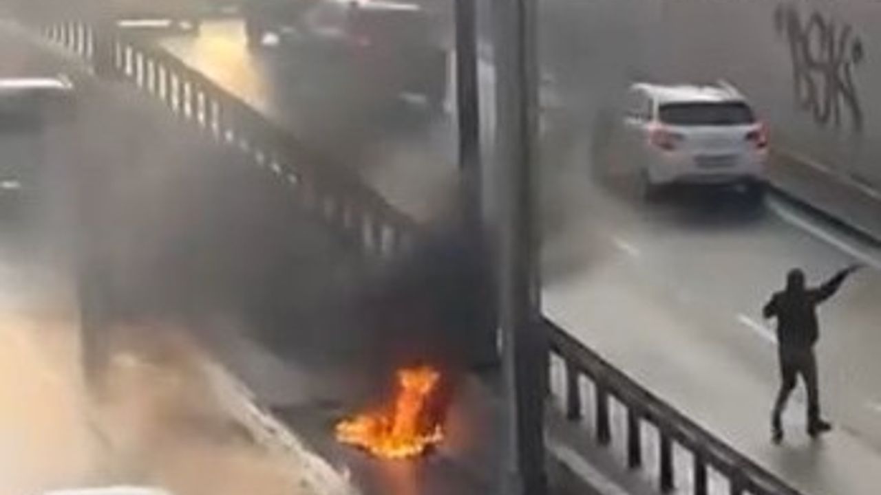 Beylikdüzü Yakuplu Mahallesi D-100 Karayolu'nda saat 09.30 sıralarında seyir halindeki bir motosiklette bilinmeyen bir nedenle yangın çıktı. Motosikletten dumanlar çıktığını gören sürücü yol kenarına park ederek indi. Yangın motosikleti tamamen sardı. İhbar üzerine olay yerine sevk edilen itfaiye ekiplerinin müdahalesiyle yangın söndürüldü. Yangın, yoldan geçen diğer araçların sürücüleri tarafından cep telefonuyla görüntülendi.