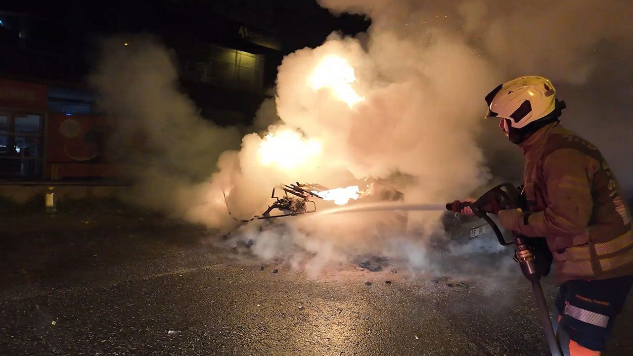 Kadıköy Fikirtepe'de park halindeki bir motosiklette çıkan yangın kısa sürede büyüyerek yanında bulunan otomobile sıçradı. İtfaiye ekiplerinin müdahalesiyle söndürülen yangında iki araç da tamamen yanarak kullanılamaz hale geldi.