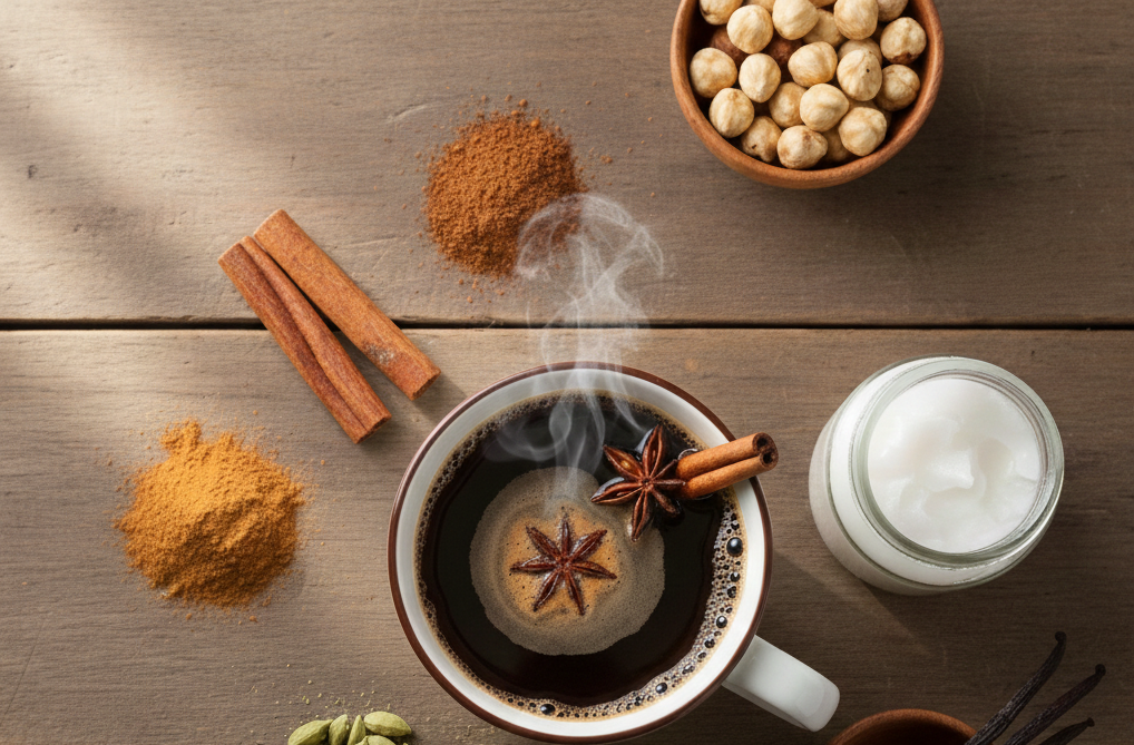Sade kahveden sıkılanlar için doğadan gelen çözümler mevcut. Tarçın, Hindistan cevizi yağı veya kakule gibi baharatlar hem sindirimi destekler hem de kahvenize farklı bir soluk getirir. Ayrıca fındık veya vanilya aromalı çekirdekleri de listenize ekleyebilirsiniz.