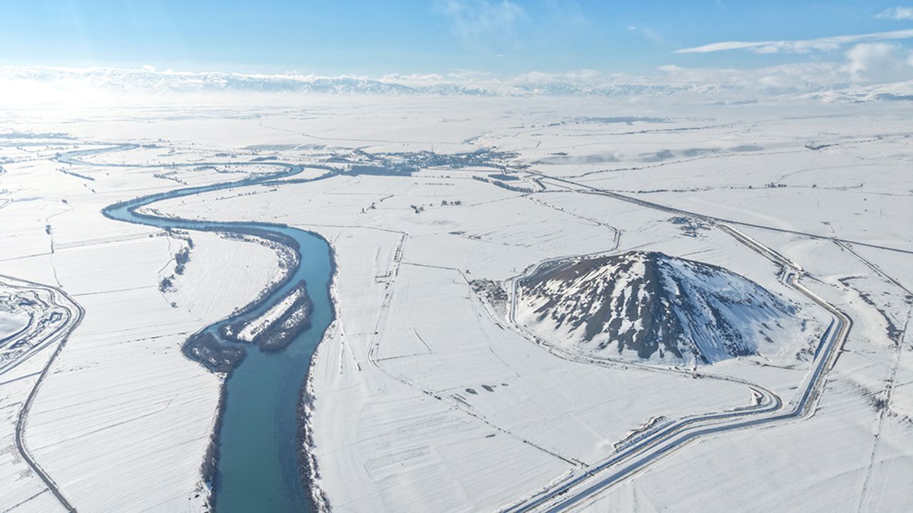 Muş’ta son günlerde etkisini artıran kar yağışı, kentin tarihi ve doğal güzelliklerini de beyaza bürüdü. "Muş Piramidi" olarak anılan ve tarih boyunca farklı medeniyetlere ev sahipliği yaptığı bilinen Mercimek Kale Höyüğü, karla kaplanan siluetiyle dikkat çekti. Murat Nehri kenarında bulunan ve yapısıyla uzaktan bakıldığında piramidi andıran höyük, kar yağışının ardından adeta kartpostallık görüntüler oluşturdu. Beyaz örtüyle kaplanan tarihi alan, hem doğa hem de tarih tutkunlarının ilgisini çekti. Efsaneleriyle de bilinen Mercimek Kale Höyüğü, dört mevsim ayrı bir güzellik sunarken, kış aylarında oluşan manzarasıyla görsel bir şölen yaşattı. Kentin önemli tarihi değerlerinden biri olan Mercimek Kale Höyüğü, kar yağışıyla birlikte bir kez daha Muş’un doğal ve kültürel zenginliğini gözler önüne serdi. Kışın beyaza bürünen "Muş Piramidi", hem tarihi mirası hem de büyüleyici manzarasıyla ziyaretçilerini ağırlamaya devam ediyor.