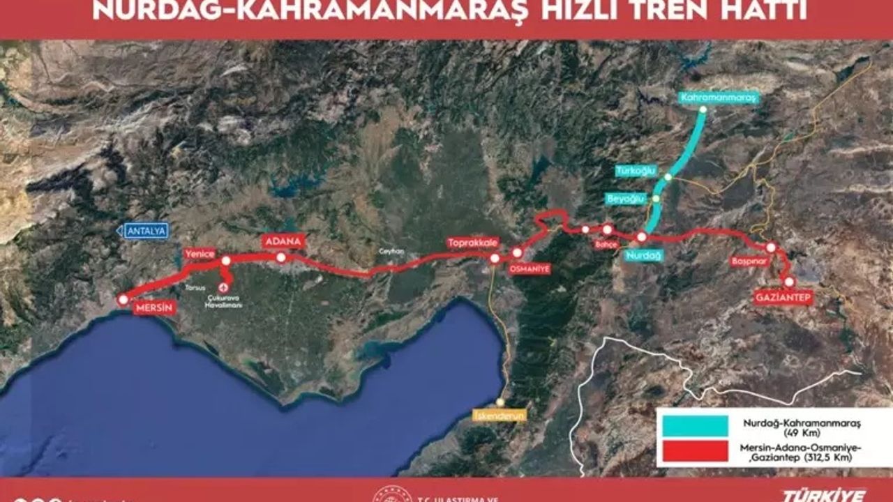 Ulaştırma ve Altyapı Bakanı Abdulkadir Uraloğlu, Gaziantep’in Nurdağı ilçesinden başlayarak Kahramanmaraş’a uzanacak hızlı tren hattına ilişkin yazılı açıklama yaptı. Bakan Uraloğlu, Nurdağ-Kahramanmaraş hızlı tren hattının, yapımı planlanan 235 kilometrelik Malatya-Narlı-Nurdağı Hızlı Tren Projesi’ne bağlanacağını dile getirdi. Uraloğlu, "Toplam 49 kilometre uzunluğunda planladığımız Nurdağ-Kahramanmaraş hızlı tren bağlantısının proje çalışmalarına devam ediyoruz. Proje çalışmalarını tamamladıktan sonra yatırım programına alarak yapım çalışmalarını başlatmayı hedefliyoruz. Hat ile hem yolcu hem yük taşımacılığında önemli bir kapasite artışı sağlayacağız" açıklamasında bulundu.