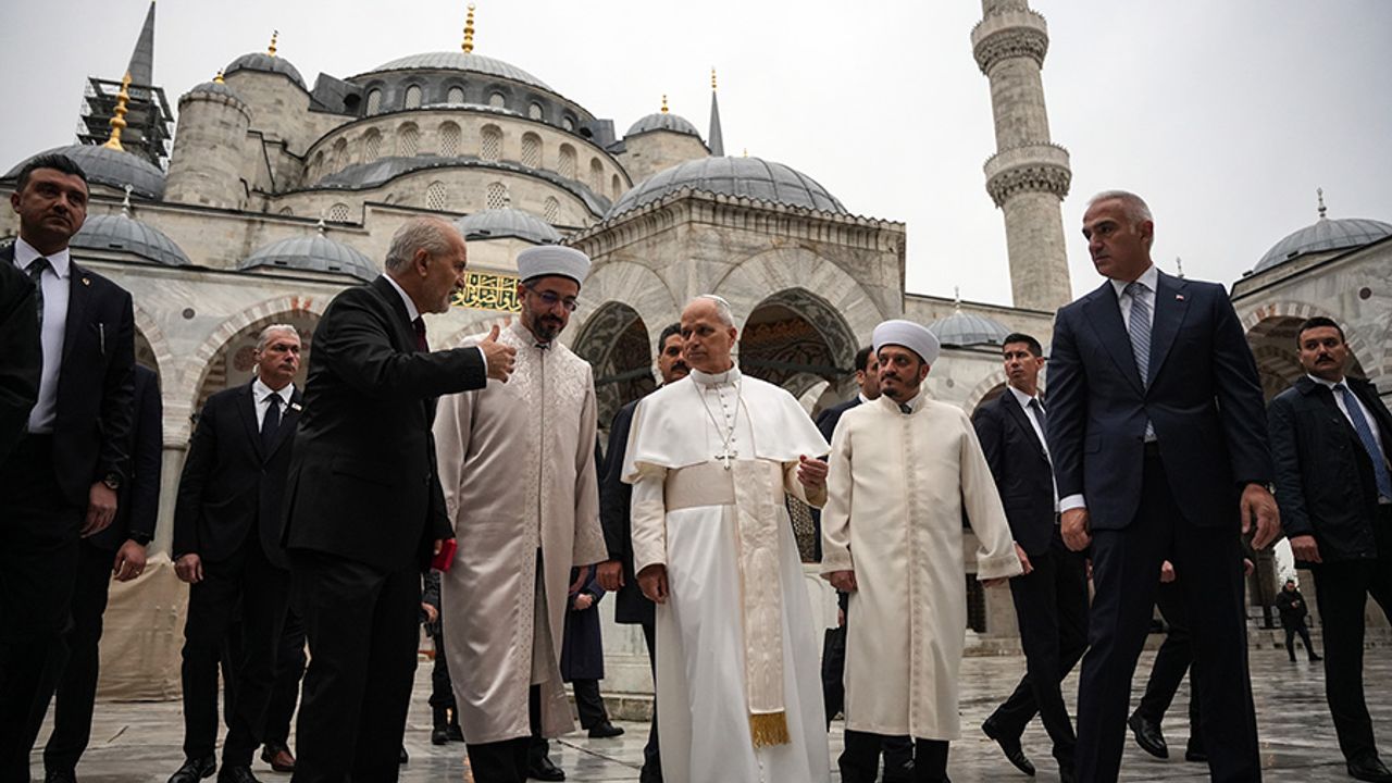 Cumhurbaşkanı Recep Tayyip Erdoğan'ın resmi daveti üzerine Türkiye'ye resmi ziyaretini gerçekleştiren Papa 14. Leo'nun İstanbul'daki ziyaretleri sürüyor. Geceyi Şişli'deki Saint Esprit Katedrali'nde geçiren Papa 14. Leo'nun cumartesi günkü temasları kapsamındaki ilk durağı Sultanahmet Camii oldu. Ziyaret nedeniyle bölgede yoğun güvenlik önlemleri alınırken, Papa'yı Kültür ve Turizm Bakanı Mehmet Nuri Ersoy, İstanbul İl Müftüsü Doç. Dr. Emrullah Tuncel, Sultanahmet Cami imamı Fatih Kaya, müezzin Musa Aşgın Tunca ve diğer yetkililer karşıladı. Sultanahmet Cami müezzini Musa Aşgın Tunca, Papa 14. Leo'ya camiyi anlattı. Yaklaşık yarım saatlik ziyaretin ardından Papa, Yeşilköy'deki Mor Efrem Süryani Ortodoks Kilisesi'nde geçmek üzere Sultanahmet Camii'nden ayrıldı.