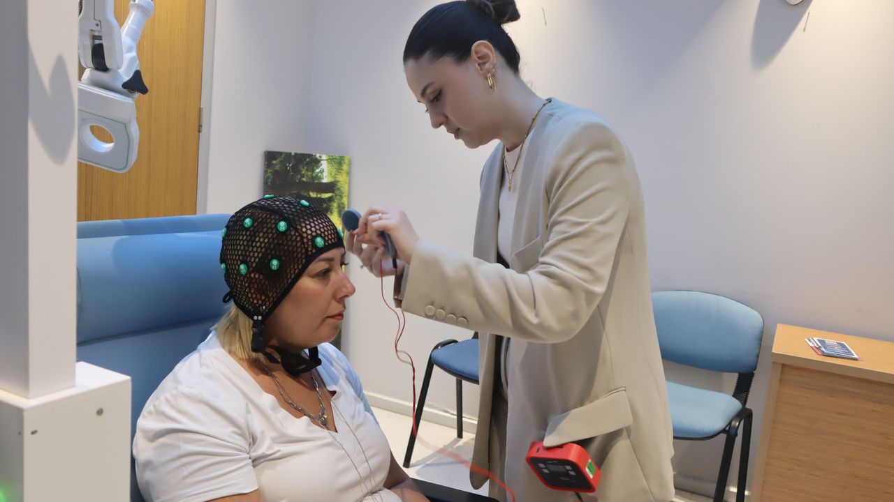 Uzman Psikolog İrem Doğanoğlu, Nöropsikoloji Laboratuvarı'nda pek çok modern program ve uygulama kullanılarak hastaların tanı ve tedavisinin gerçekleştirildiğini dile getirdi. Hastaların uygulama öncesi gerekli uygunluğu sağlayıp sağlamadıklarının mutlaka kontrol edildiğini belirten Doğanoğlu, "Hasta depresyonla başvuruyor ama aslında kişinin bilişsel anlamda dikkatinde ya da hafızasında bir problem olabiliyor. Bu gibi durumlarda da hekimlerimiz, hastaları Nöropsikoloji Laboratuvarı'na tanı ve tedavi için yönlendiriyor. Burada beyin uyarım ve nöromodülasyon cihazlarından faydalanarak pek çok terapi ve tedavi metodu kullanıyoruz. Bu cihazlar insan sağlığı bakımından risk teşkil eden cihazlar zaten değil, herhangi bir ağrısı sızısı olmayan cihazlar. Tabii ki uygulamadan ve uyarım vermeden önce muhakkak bir EEG filmi çekimi yapıp hastayı risklerden arınmış şekilde alıyoruz" dedi.