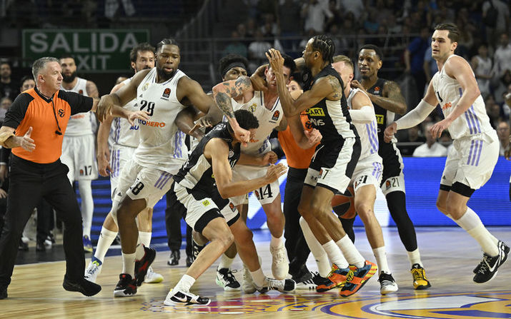 Madrid'de oynanan mücadelenin bitimine 1 dakika 40 saniye kala Real Madrid'den Sergio Llull'un Kevin Punter'a yaptığı sert faul sonrasında iki basketbolcu arasında yaşanan gerginlik, diğer oyuncuların da dahil olmasıyla arbedeye dönüşmüştü.