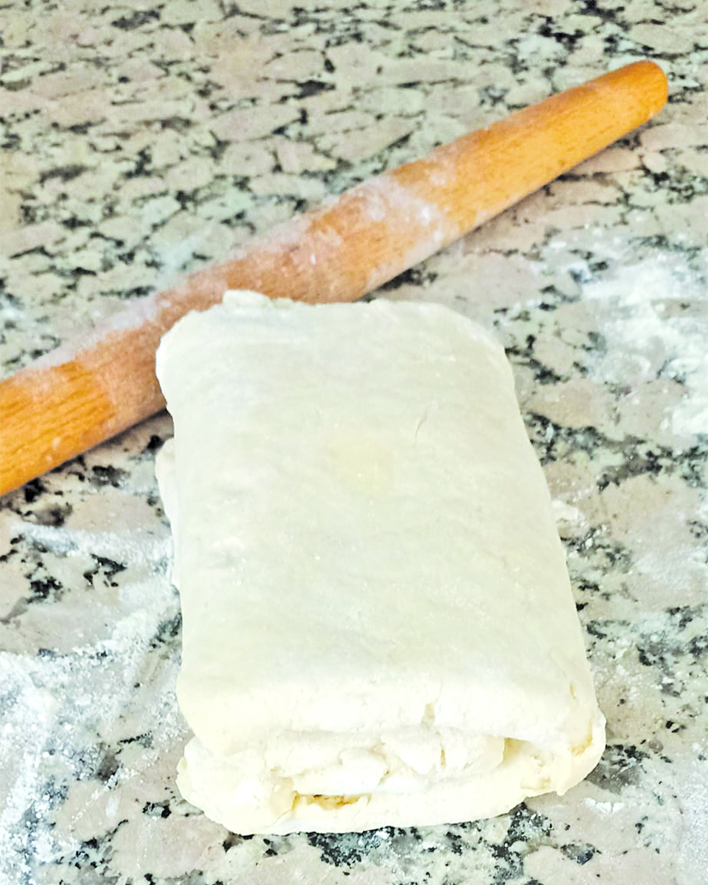 Her saat sonunda hamuru biraz açın ve zarf gibi katlayın (bunu iki kez yapın). Böylece hamur daha da gevrek ve yumuşak hale gelecektir.