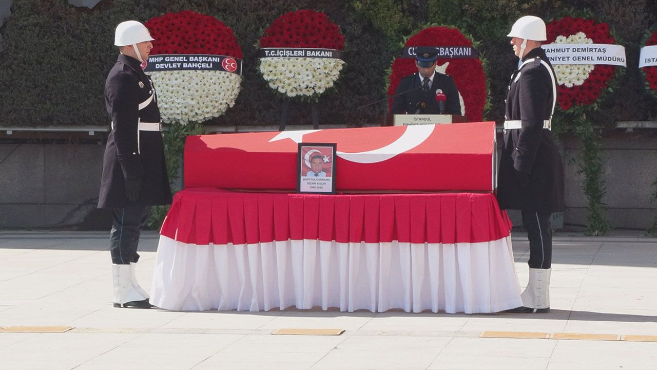 İstanbul Havalimanı Şube Müdürlüğü'nde görevli şehit polis memuru Seçkin Yalçın için bugün İstanbul Emniyet Müdürlüğü’nde tören düzenlendi. Bekar olduğu öğrenilen 15 yıllık emniyet mensubu Yalçın’ın Türk bayrağına sarılı naaşı, Kozlu Gasilhanesi’nden alındıktan sonra tören için İstanbul Emniyet Müdürlüğü’nün Vatan Caddesi'ndeki yerleşkesine getirildi. Burada şehit için saygı duruşunda bulunuldu. Törene, şehidin annesi, babası ve kardeşleri ile aile yakınları, İstanbul Valisi Davut Gül, İstanbul Büyükşehir Belediye Başkan Vekili Nuri Aslan, İstanbul Emniyet Müdürü Selami Yıldız, İstanbul İl Jandarma Komutanı Korgeneral Yusuf Kenan Topcu ve şehidin meslektaşları katıldı. Okunan duanın ardından Seçkin Yalçın’ın naaşı, tören mangası tarafından omuzlarda taşınarak cenaze aracına konuldu. Bu sırada polisin desteğiyle ayakta durabilen acılı baba, tören mangasında taşınan oğlundan ayrılamadı.
