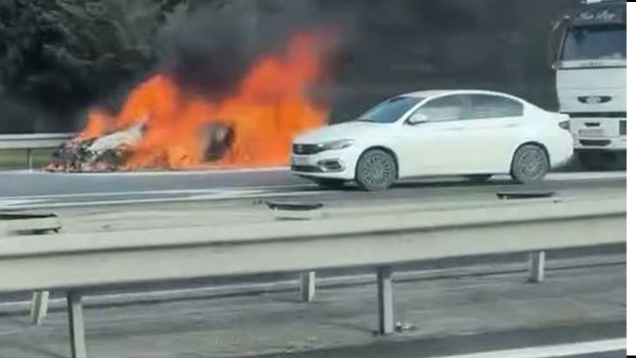 Yangın, yoldan geçen diğer araçların sürücüleri tarafından cep telefonuyla görüntülendi.