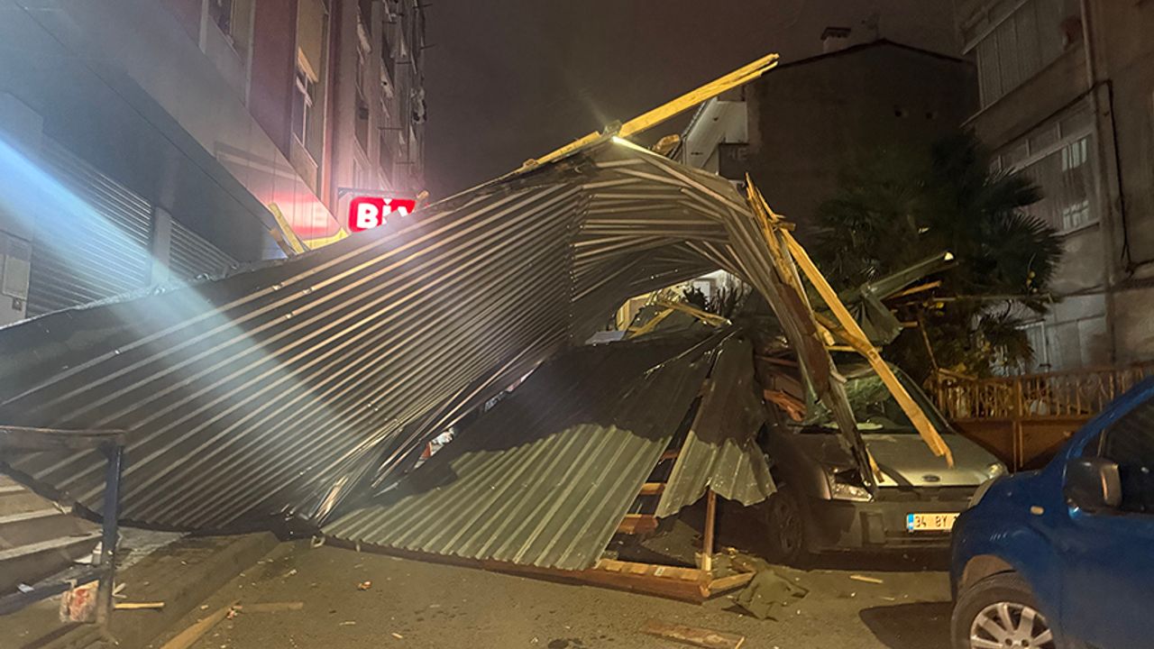Olay, saat 19.00 sıralarında Küçükçekmece Mehmet Akif Mahallesi Çam Sokak’ta meydana geldi. Edinilen bilgilere göre, şiddetli rüzgar nedeniyle bir binanın çatısı yerinden koparak savruldu. Uçan çatı önce karşı binanın çatısının üzerine düştü ardından sokakta park halinde bulunan araçların üzerine isabet etti. O sırada sokakta kimsenin bulunmaması faciayı önledi. Yaşanan olayda üç araçta hasar oluşurken, çöken çatı nedeniyle sokak trafiğe kapatıldı. Yapılan ihbar üzerine olay yerine polis ve itfaiye ekipleri sevk edildi. Olay anı bir iş yerlerinin güvenlik kameralarına yansırken, ekipler, düşen çatının sokaktan kaldırılması için çalışmalarına devam ediyor.