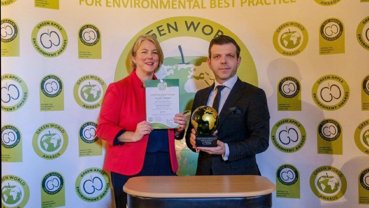 Dünyanın en yeşil ülkeleri, şirketleri ve topluluklarını belirlemek amacıyla 30 yılı aşkın süredir düzenlenen ve küresel ölçekte saygınlığı bulunan Green World Awards kapsamında, dünya genelinden yapılan yüzlerce başvuru arasından Sıfır Atık Projesi yeni bir başarı elde etti. Sıfır Atık, atık yönetimi kategorisinde 'Yeşil Dünya Şampiyonluğu' ödülüne layık görüldü. Çevre, Şehircilik ve İklim Değişikliği Bakanlığı Çevre Yönetimi Genel Müdürlüğü'nü temsilen Sıfır Atık Uygulamaları Dairesi Başkanı Ekrem Yıldırım, 13 Nisan'da Cardiff Kalesi'nde düzenlenen törende ödülü ve başarı belgesini teslim aldı.