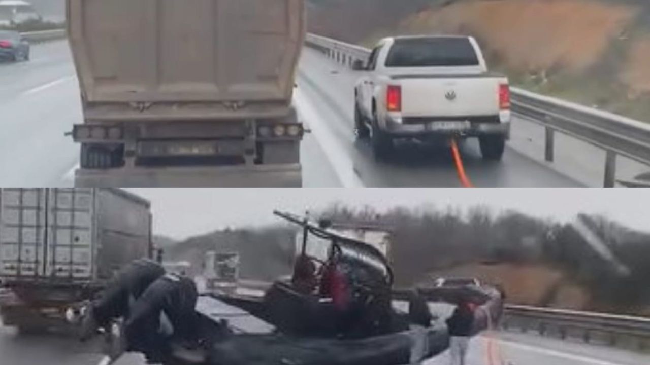 Olay, saat 15.00 sıralarında Kuzey Marmara Otoyolu Ankara istikametinde meydana geldi. Orta şeritte ilerleyen kamyonetin çektiği römorkun bağlantı aparatı, henüz belirlenemeyen bir nedenle aniden koptu. Üzerindeki tekneyle birlikte yola savrulan römork, trafiğin ortasında kaldı. O anlar, çevredeki diğer sürücüler tarafından büyük bir şaşkınlıkla cep telefonu kameralarına kaydedildi.