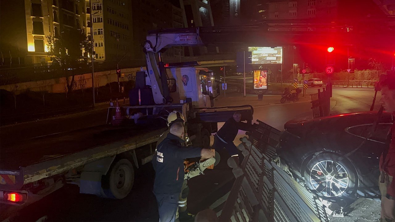 Şişli’de lüks otomobil, direksiyon hakimiyetini kaybederek bariyere çarptı. Çarpmanın etkisiyle savrulan otomobil, korkuluklara çıktı.