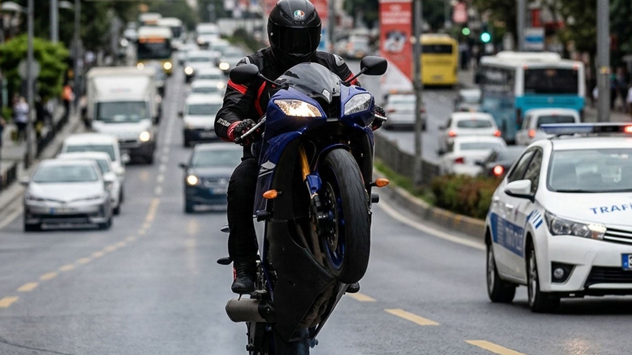 Eskişehir'de motosikletinin önünü kaldırarak sosyal medyada paylaşım yapan sürücüye 49 bin TL para cezası kesildi, ehliyetine el kondu.