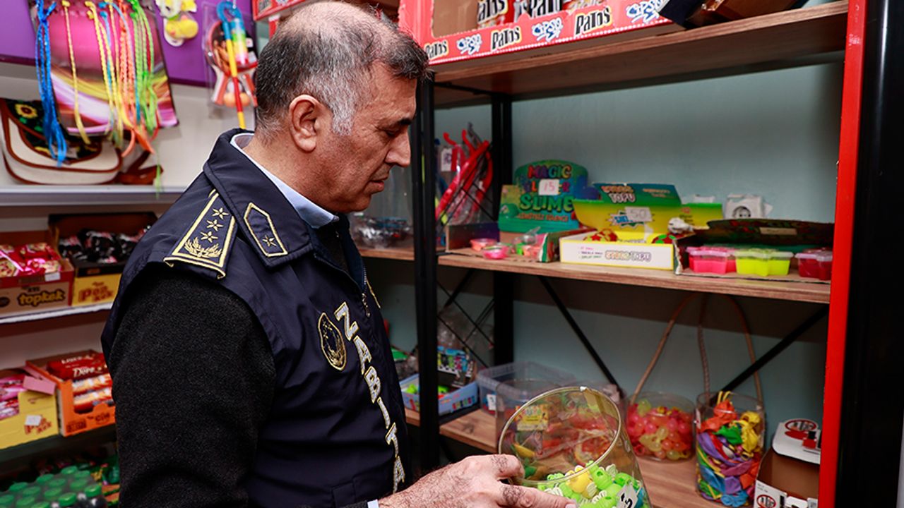 Bir okul kantinin raflarında bulunan ve paket içinde satılan küçük topları inceleyen ekipler, ürünün çocuklar için boğulma riski taşıdığını belirtti. Zabıta, "Bunlar çocukların boğazına kaçabilir, satılmaması lazım" diyerek riskli ürünleri toplattı.