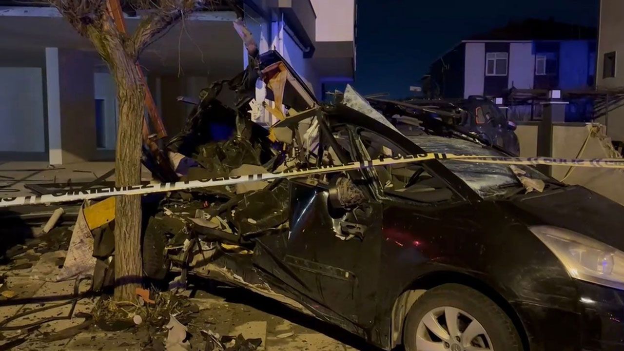 Kazada, otomobilin çarptığı iş yerinde ve üzerinden geçtiği 4 araçta büyük çapta maddi hasar meydana geldi.