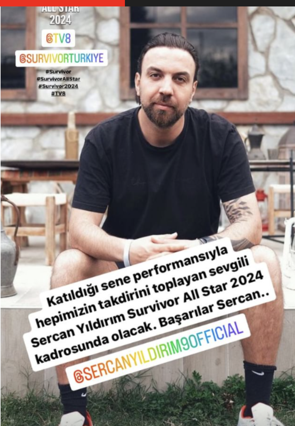 Instagram hesabından yarışmacıları açıklamaya başlayan Acun Ilıcalı, son olarak eski futbolcu Sercan Yıldırım'ı açıkladı. Ilıcalı "Katıldığı sene performansıyla hepimizin takdirini toplayan sevgilisi Sercan Yıldırım, Survivor All Star 2024 kadrosunda olacak. Başarılar Sercan" dedi.