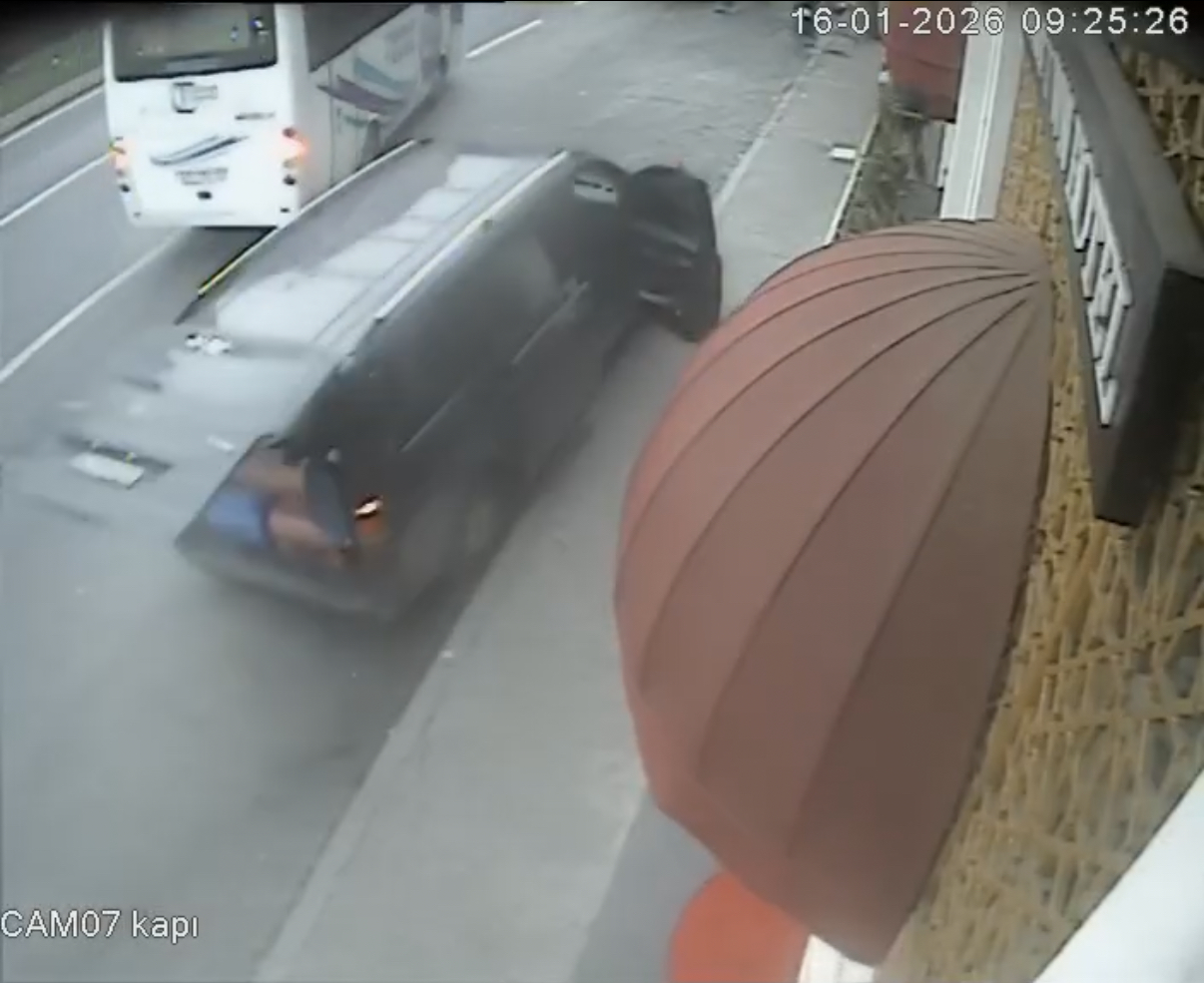 Minibüste bulunan yolcular kazadan yara almadan kurtulurken, araç kullanılamaz hale geldi. Kaza anı ise güvenlik kamerasına saniye saniye yansıdı. Görüntülerde minibüsün kapısı açık şekilde hareket ettiği anlar görülüyor. Minibüs metrelerce kayarak kaldırıma çıkıyor ardından da kaldırımdaki ağaça çarparak duruyor. Kazanın ardından ihbar üzerine olay yerine polis ekibi sevk edildi. İnceleme yapan polis ekipleri kazayla ilgili rapor tuttu.