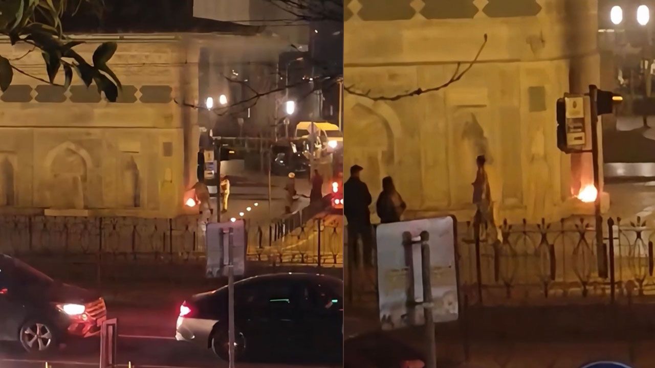 Diğer yandan tarihi çeşmesinin yandığı anlara ait cep telefonu görüntüsü ortaya çıktı. Görüntülerde çeşmeden alevlerin yükseldiği ve vatandaşların uzaklaştığı anlar görülüyor. Bir süre sonra olay yerine gelen itfaiye ekipleri alevlere müdahale ediyor. Yaşananları kayda alan kişi ise ateş yakılmasına tepki gösteriyor.