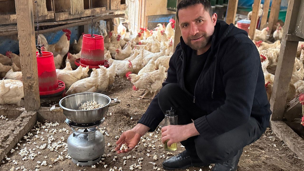 Ordu'da organik yumurta üreticiliği yapan İhsan Tanrıvermiş (42), kış aylarında dışarıya çıkamadıkları için strese giren tavukları için kümeste mısır patlatıyor. Bu yöntemle verim sağladığını söyleyen Tanrıvermiş, "Hem hareket etmiş oluyorlar hem de patlamış mısır yiyerek damak tatları değişmiş oluyor" dedi.