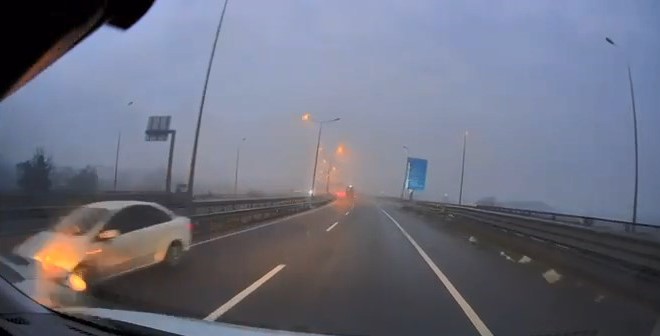 Kaza, saat 08.00 sıralarında, Kuzey Çevre Yolu Çamköy Mahallesi geçişi Yedigöller Sapağı mevkisinde meydana geldi. Ters yöne giren Rafet T.'nin kullandığı 67 SN 111 plakalı otomobil, sol şeritte ilerleyen Umut N. idaresindeki 81 ADZ 193 plakalı otomobil ile kafa kafaya çarpıştı. Çarpışmanın etkisiyle savrulan 81 ADZ 193 plakalı otomobil, orta şeritte ilerleyen Mahmut B. yönetimindeki 81 AAF 297 plakalı kamyonete, diğer otomobil ise bariyere çarptı. Kazada yaralanan olmazken, polis ekipleri inceleme başlattı. Kaza, kamyonetin araç içi kamerasına yansıdı.