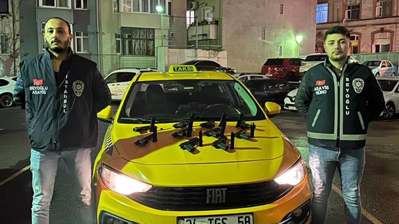 Araçta arama yapan Beyoğlu Asayiş Büro Amirliği polisleri, şeffaf bir poşet içerisinde 10 adet ruhsatsız silah ele geçirdi. Yapılan aramalar ise kameralara yansıdı. Çalışmaların ardından gözaltına alınan taksici Enes Kürşat U. emniyete götürülürken, taksi ise çekici yardımıyla otoparka götürüldü. Emniyette işlemleri tamamlanarak adliyeye sevk edilen taksici, “silah ticareti ve kaçakçılığı yapmak” suçundan tutuklanarak cezaevine gönderildi.