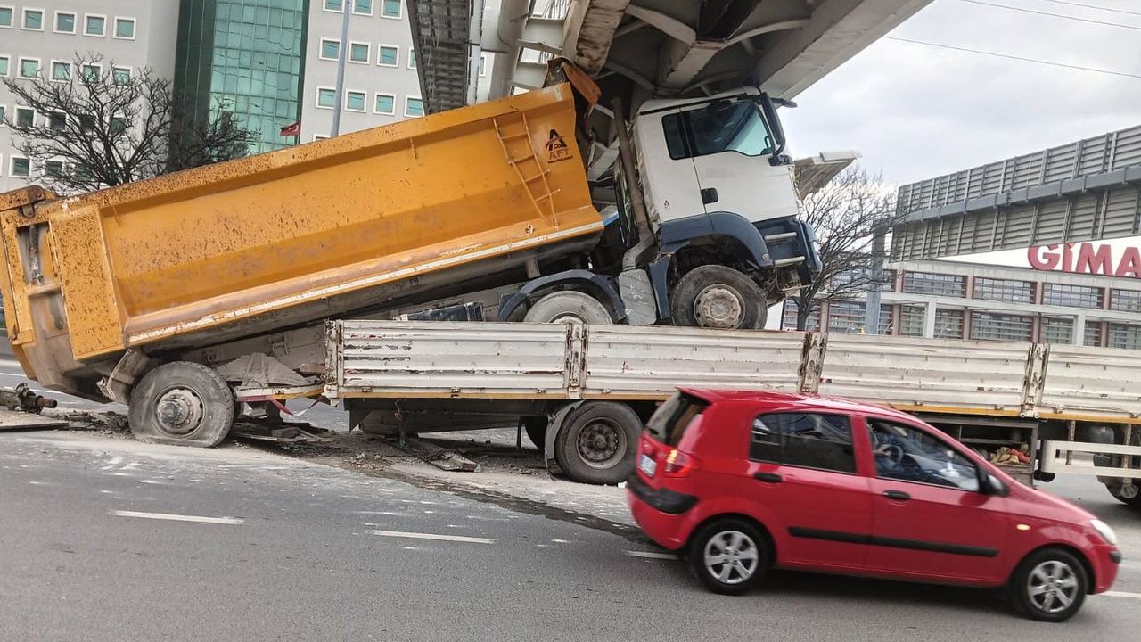 Kaza, Yenimahalle ilçesi Bağdat Caddesi’nde meydana geldi. Alınan bilgilere göre, özel bir firmaya ait olan ve dorsesine hafriyat kamyonu yüklenmiş tır seyir halindeyken üst geçide çarptı. Çarpışmanın etkisiyle hafriyat kamyonu üst geçide sıkıştı ve bölgedeki trafik akışından aksama meydana geldi. Ekiplerin müdahalesiyle kazaya karışan araçlar yoldan çekilirken, üst geçit ve tır ile kamyonda hasar oluştu. Can kaybı veya yaralanmanın yaşanmadığı olayla ilgili inceleme başlatıldı.