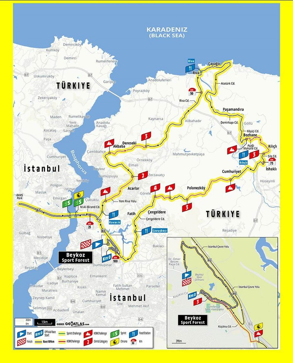 Ensar Efendioğlu yarışta parkurlar hakkında şu bilgileri verdi: “Yarışta 3 parkurumuz var. Uzun parkur 105 km. Toplamda 1853 metrelik bir tırmanış bizleri bekliyor. Bu parkurda 4 tane beslenme noktamız var. Bu parkurun en önemli özelliği iki kıtayı birleştiren sprint kapısı ve tırmanış kapısıdır. Tırmanış kapısı parkurun 80’inci kilometresinde yer almakta ve 6 km ‘dir. Kısa parkur 52.4 km’dir. Bu parkurda 2 tane beslenme istasyonumuz var. Tırmanış uzunluğu ise 836 metredir. Bir de 6 kilometrelik Aile Parkuru var. Bu parkur bisiklet sürmeye yeni başlayan, çocuğu ile bisiklet sürmek isteyen, aileler için özel tasarlanmış ve yokuşu olmayan, çok güvenli bir parkurdur. Beykoz ormanı içerisinde yer alıyor. Bu parkur bisiklet sporunu tabana yaymak için oluşturuldu. Bu parkur geçen yıl da vardı ama bu yıl parkuru daha da ön plana çıkaracağız. Bir de dünyada bir ilk olan 500 metrelik Asya’dan Avrupa’ya geçiş sprint kapısı var. Burada en hızlı sporcu belirlenecek. Maksimum hıza ulaşacak sporcu yeşil mayoyu kazanacak. Sprint alanları dünyada var ama iki kıtayı birleştiren bizimki gibi bir sprint alanı dünyada yok.”