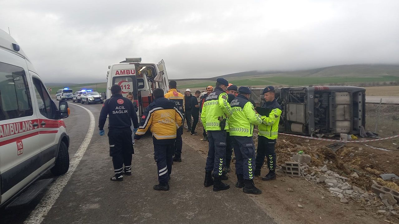 Aksaray'da tur otobüsünün şarampole devrildiği kazada ilk belirlemelere göre 20 kişi yaralandı.