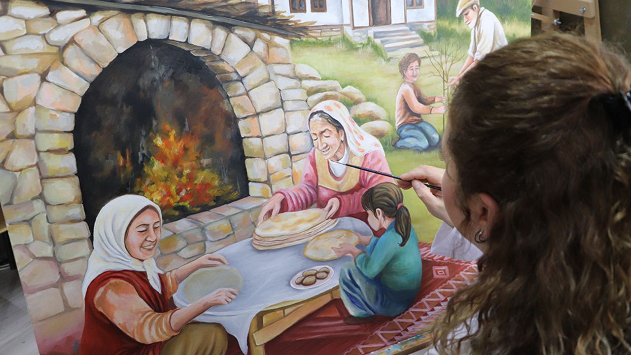 Türkiye'de aile kurumunu güçlendirmeye yönelik sosyal politikaların, farkındalık çalışmalarının ve destek programlarının öne çıkarılması amacıyla 2025, 'Aile Yılı' olarak ilan edilmişti. Bu kapsamda geçtiğimiz yıl boyunca yapılan çalışmalar, 2026 yılı başlamasına rağmen sona ermedi. Eskişehir Olgunlaşma Enstitüsü Görsel Sanatlar Atölyesi'nde de ressamlar; sıcak ve samimi aile ortamını, fırçalarıyla tuvallere aktardı. Yapılan resimlerden birinde; dedesiyle birlikte fidan diken erkek çocuğu ile annesi ve ninesinin yanında ocak başındaki samimi aile ortamında hamur açan bir kız yer aldı. Görenlerin yüzünde tebessüm oluşturan bu eserlerin son fırça darbesine kadar yaklaşık 3 aylık titiz bir yolculuk sonucu tamamlandığı belirtildi.