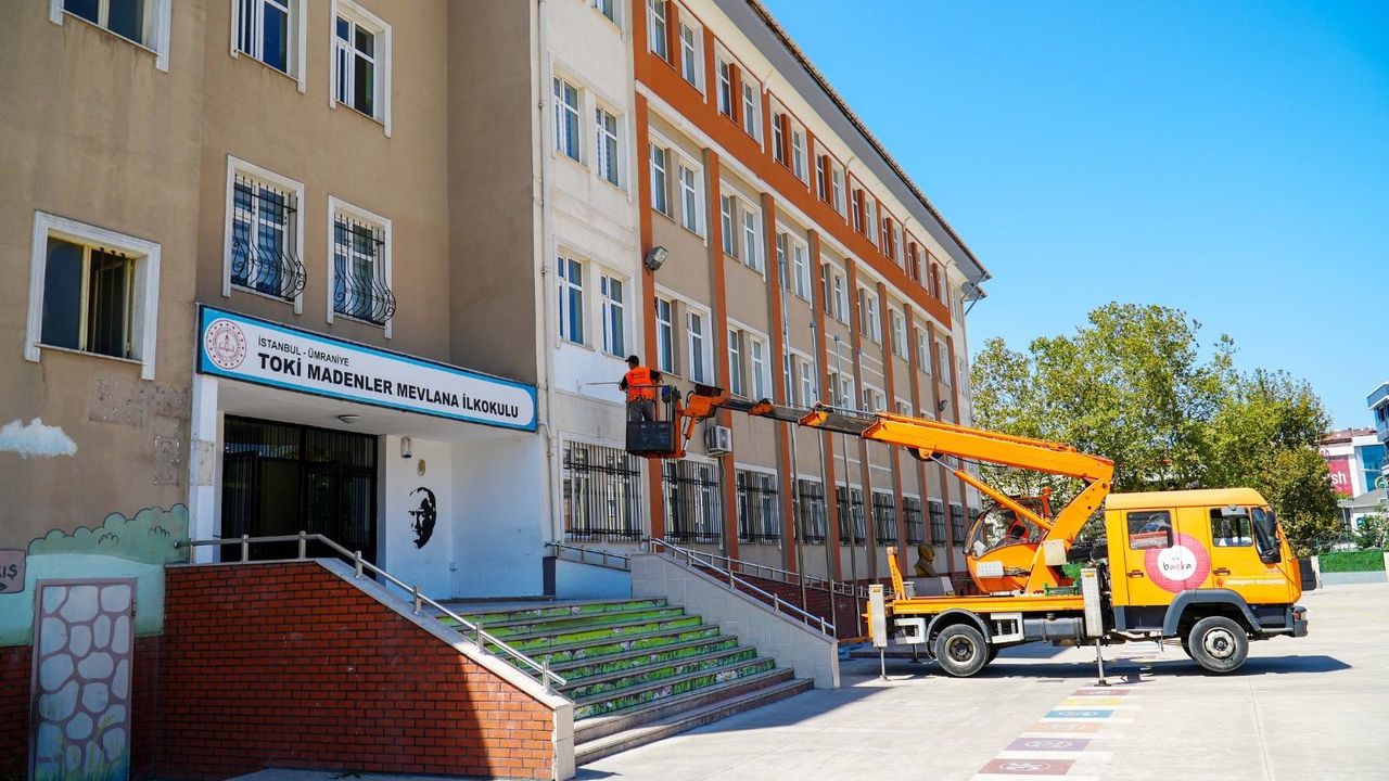 Ümraniye'de eğitim gören öğrencilerin daha sağlıklı ve güvenli ortamlarda eğitim alabilmesi için ekipler çalışmaları titizlikle sürdürüyor. Okullarda gerçekleştirilen çalışmalar kapsamında; sınıflarda bulunan sıra ve masaların tamiratı ve temizliği yapılırken, binaların iç ve dış cephe boyaları yenilendi. Bahçe duvarları ve korkulukların boyama ve bakım işlemleri tamamlandı. Ayrıca ihtiyaç duyulan okul çevrelerinde; kaldırımlar onarıldı, bozuk yollar asfaltlandı. Yağmur suyu kanallarının temizliği ile birlikte altyapıya yönelik müdahaleler de yapıldı.